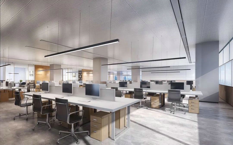 6、照明设计。办公空间中的照明设计是有着大学问的,不同区域的功能不同对于照明的需求也是不同的。各类灯具功能侧重和适用空间也有所不同,根据场景需求采用不同的灯具组合,进行多样化的灯具搭配,这才是一套优秀的灯光设计应该做到的。科学合理的照明设计,可以营造更加舒适的办公环境,提高工作效率。