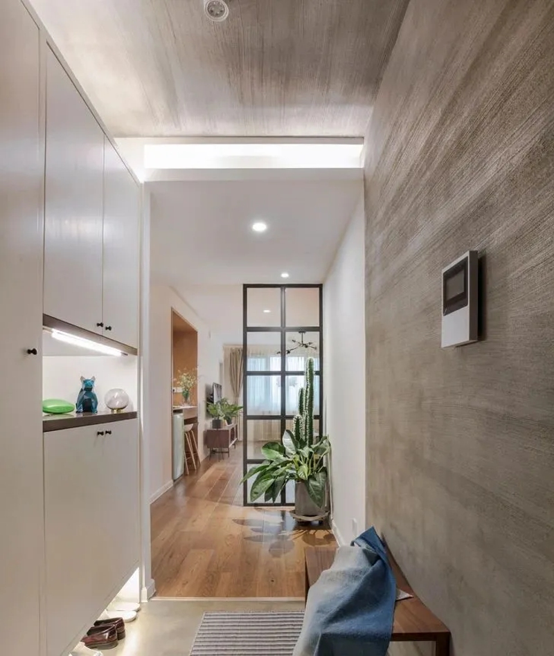 ① 挪门:门开“中间”,进门两侧摆放收纳柜,既增加了储物容量,开门还不见柜体深度。常用于独立空间的改造。