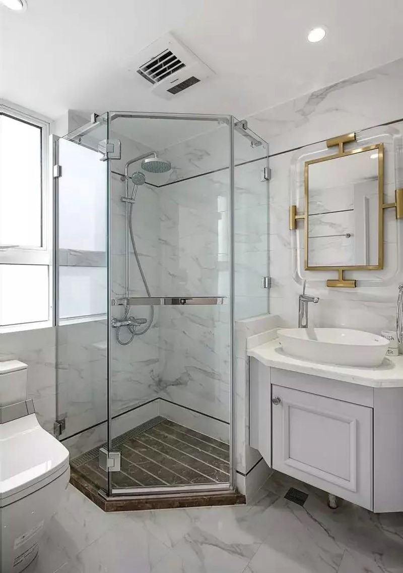 7、卫生间不装浴缸,选择装淋浴房,一面钢化玻璃固定出淋浴区足矣,几百块搞定了。如果你能接受浴帘的话,费用还能省一半,重要的做好湿区排水。